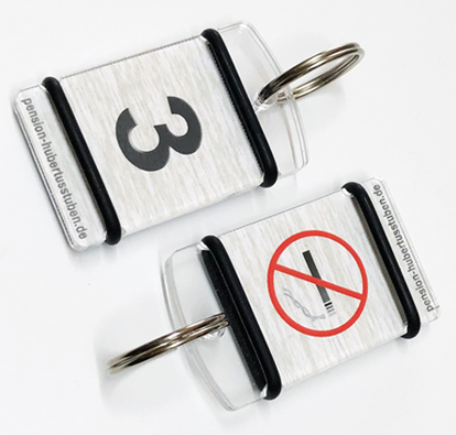 Unsere Schlüsselanhänger sind ein günstiges und erfolgreiches Werbemedium für Gäste, weil sie mehrmals täglich in die Hand genommen werden!