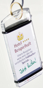 Lassen Sie den Schlüsselanhänger Interesse und Neugier wecken - Detailinformationen gibt dann die Rezeption!